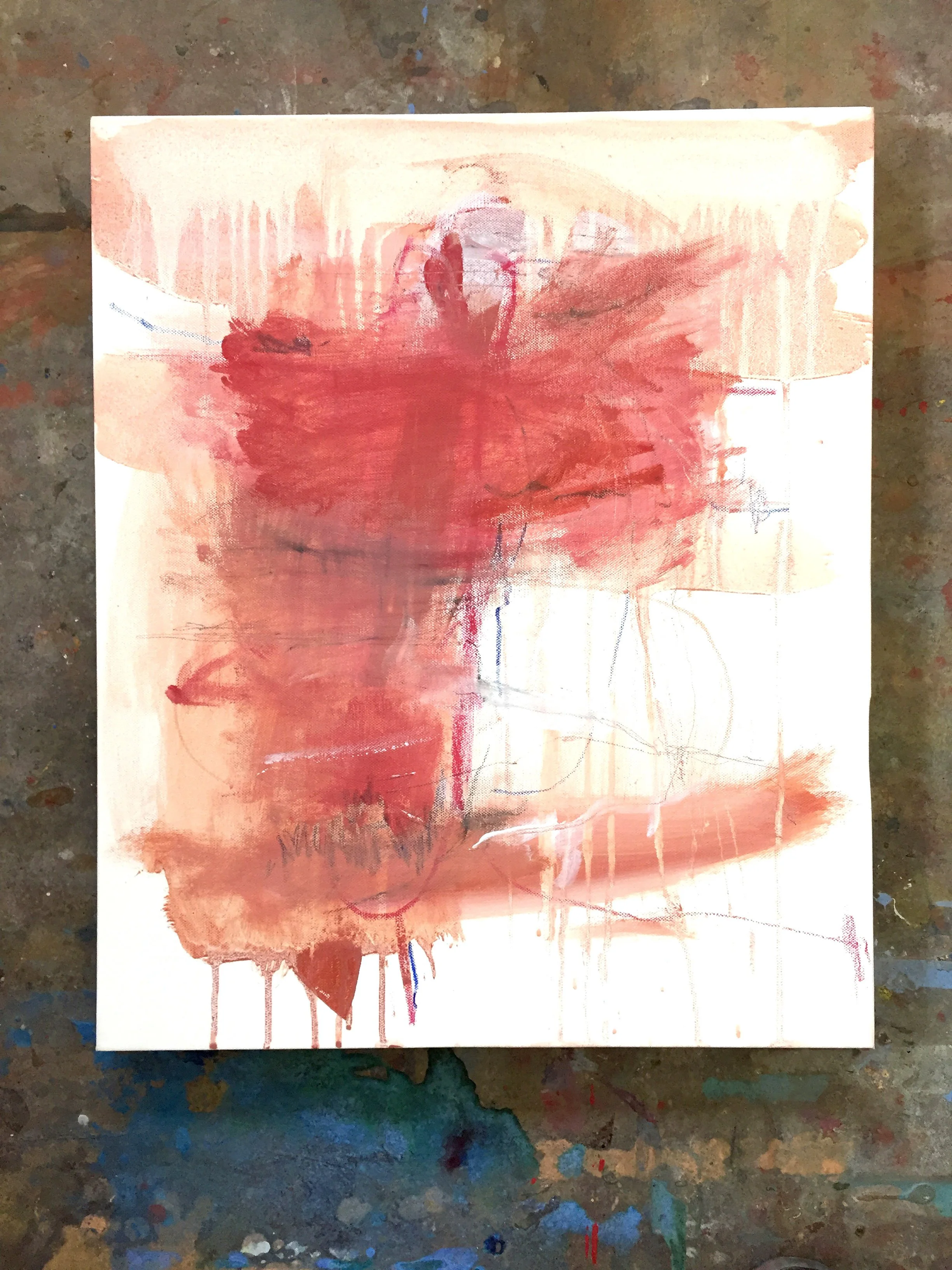 Pure abstraction with a play of soft coral pinks and doodling line.